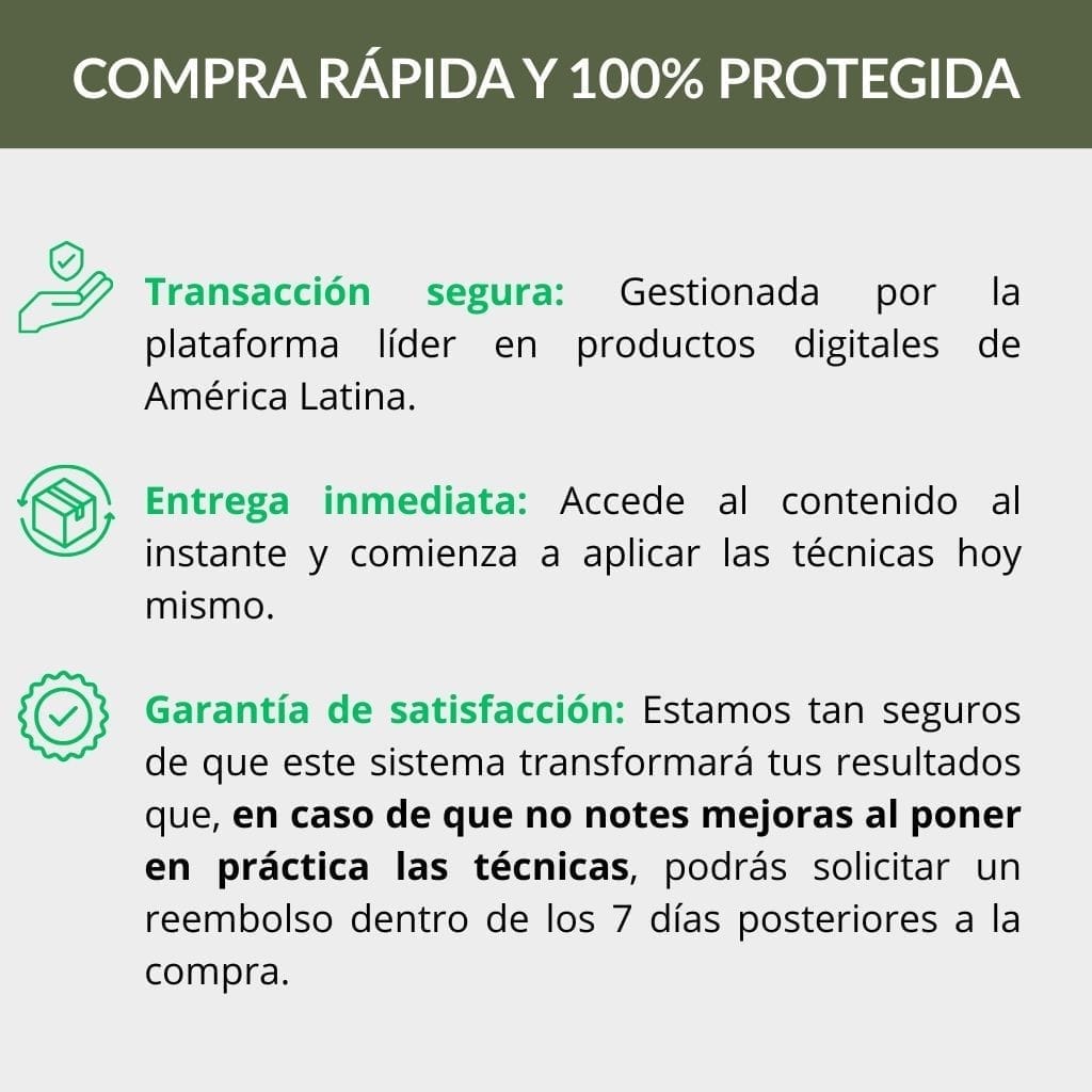 Este sistema además de las ventas aborda el problema desde la raíz: identifica bloqueos, corrige patrones limitantes y te enseña,